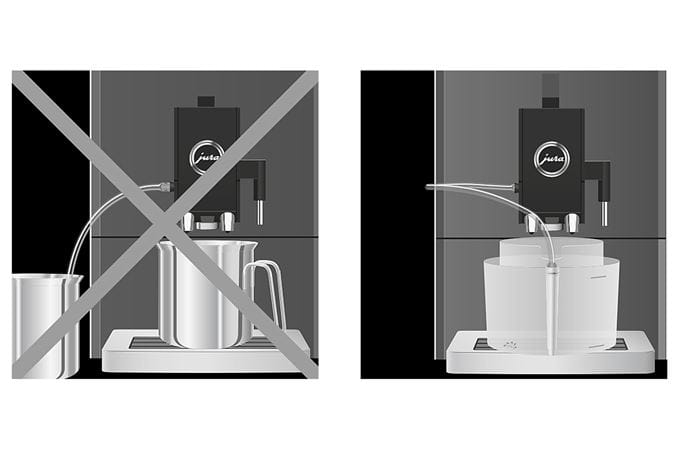 Lo speciale contenitore a due camere in plastica adatto al lavaggio in lavastoviglie facilita la pulizia del sistema del latte, rendendo superflua la ricerca di un recipiente adatto. Il contenitore è compatibile con tutte le macchine automatiche da caffè JURA sotto indicate e dispone di contrassegni ben visibili per il dosaggio del detergente per il sistema del latte e dell'acqua. La forma ottimizzata garantisce un ingombro ridotto.