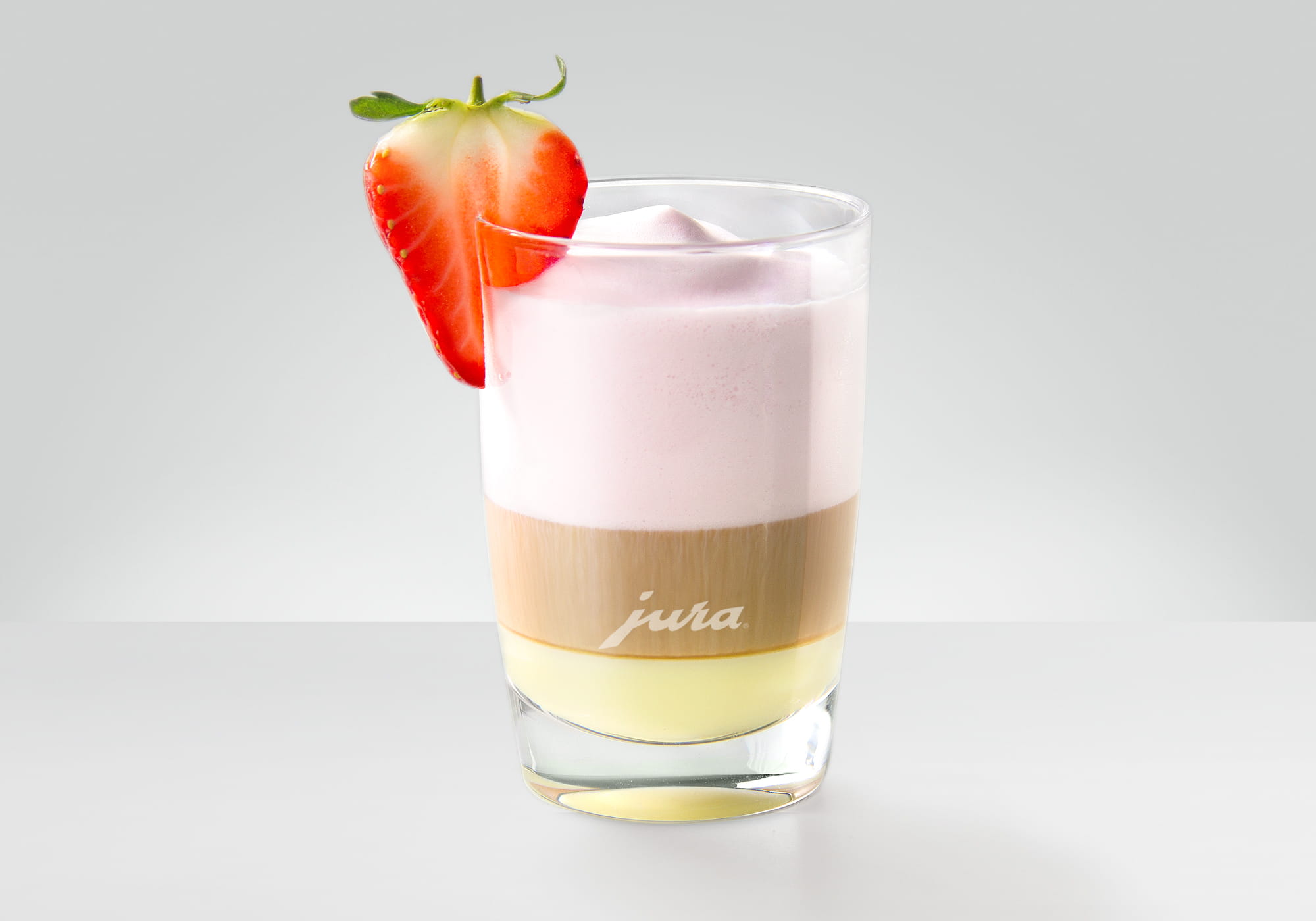 • Versare il latte e lo sciroppo alla fragola nel cappuccinatore e preparare una porzione di schiuma di latte calda.